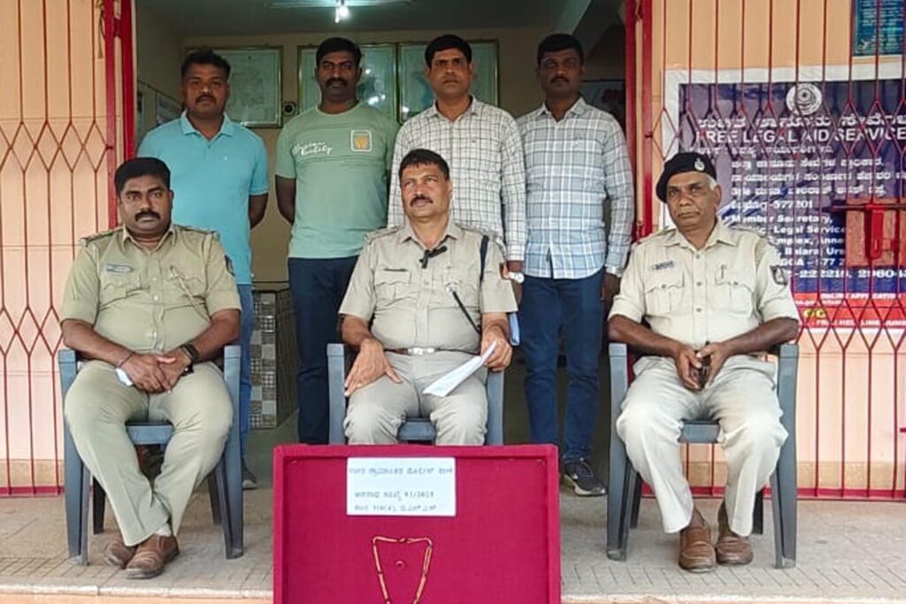 ಜಿಲ್ಲಾ ರಕ್ಷಣಾಧಿಕಾರಿಗಳ ಸೂಚನೆ ಮೇರೆಗೆ ಡಿವೈಎಸ್ಪಿ ಗೋಪಾಲಕೃಷ್ಣ ನಾಯಕ್ ಮಾರ್ಗದರ್ಶನದಲ್ಲಿ ವಿಶೇಷ ತನಿಖಾ ತಂಡ ರಚಿಸಲಾಗಿತ್ತು. ಮಾಂಗಲ್ಯಸರ ಮತ್ತು ಚಿನ್ನದ ಉಂಗುರ ಕಳ್ಳತನ ಮಾಡಿದ್ದ ಹಾವೇರಿ ಜಿಲ್ಲೆ ಹಾನಗಲ್ ತಾಲ್ಲೂಕು ಹೊಂಬ್ಳಿ ಗ್ರಾಮದ ವಾಸಿ ಬಸಯ್ಯ ಹಿರೇಮಠ್ ಎಂಬಾತನನ್ನು ಪೊಲೀಸರು ಬಂಧಿಸಿದ್ದಾರೆ. ಬಂಧಿತನಿಂದ ೩.೪೦ ಲಕ್ಷ ರೂ. ಮೌಲ್ಯದ ಮಾಂಗ್ಯ ಸರ ಮತ್ತು ಉಂಗುರವನ್ನು ವಶಕ್ಕೆ ಪಡೆಯಲಾಗಿದೆ.