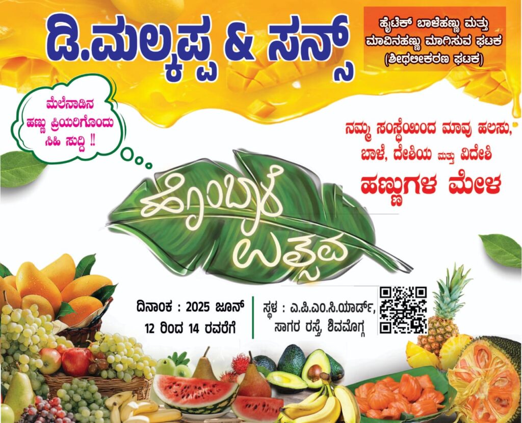 ನಗರದ ಎಪಿಎಂಸಿ ಆವರಣದಲ್ಲಿರುವ ಮೆ. ಮಲ್ಲಪ್ಪ ಅಂಡ್ ಸನ್ಸ್ ಸಂಸ್ಥೆಯ ವತಿಯಿಂದ ಆಯೋಜಿಸಿರುವ ಹಣ್ಣಿನ ಮೇಳಕ್ಕೆ ಇಂದು ಬೆಳಗ್ಗೆ ಚಾಲನೆ ನೀಡಿ ಅವರು ಮಾತನಾಡಿದರು.