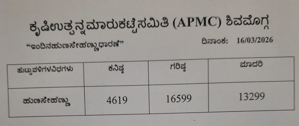 ಶಿವಮೊಗ್ಗ ಕೃಷಿ ಮಾರುಕಟ್ಟೆ ಉತ್ಪನ್ನ ಸಮಿತಿ (APMC) ಇಂದು ಬಿಡುಗಡೆ ಮಾಡಿದ ಅಡಿಕೆ, ತರಕಾರಿ, ಹುಣಸೇಹಣ್ಣು ಹಾಗೂ ಒಣ ಮೆಣಸಿನ ಕಾಯಿಯ ದರ ಅವಲೋಕಿಸಿದಾಗ ಎಲ್ಲವೂ ಏರಿಳಿತ ಆಗಿರುವುದು ಕಂಡುಬರುತ್ತದೆ.